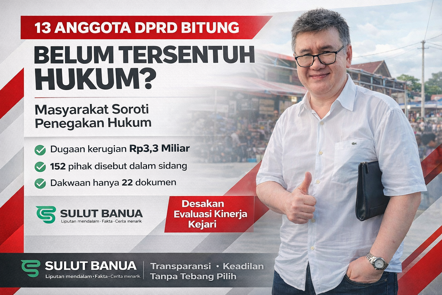 SULUTBANUA.COM, SULUT – Kasus Perjalanan Dinas (Perjadin) DPRD Kota Bitung Tahun Anggaran 2022–2023 masih menyimpan banyak pertanyaan besar di tengah masyarakat. Beberapa waktu lalu, hanya 6 orang tersangka yang ditahan oleh Kejaksaan Negeri (Kejari) Kota Bitung, namun dibalik itu terdapat dugaan keterlibatan 13 orang anggota dewan lainnya dengan kerugian negara mencapai miliaran rupiah. Namun hingga kini, ke-13 orang tersebut belum mendapatkan tindakan penahanan atau proses hukum dari pihak kejaksaan. Senin 13 April 2026.
