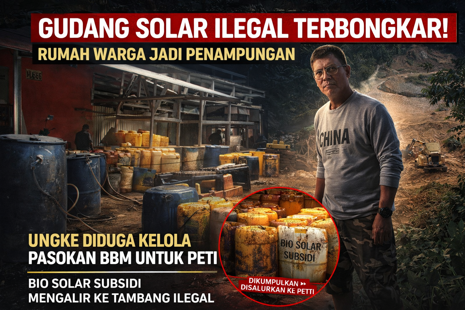SULUTBANUA.COM, MITRA – Warga menemukan sebuah rumah tinggal yang beralih fungsi menjadi gudang penampungan Bahan Bakar Minyak (BBM) jenis bio solar. Praktik solar ilegal Kebun Raya ini diduga kuat menyuplai kebutuhan operasional Pertambangan Emas Tanpa Izin (PETI) di wilayah tersebut,l. 31 Maret 2026.